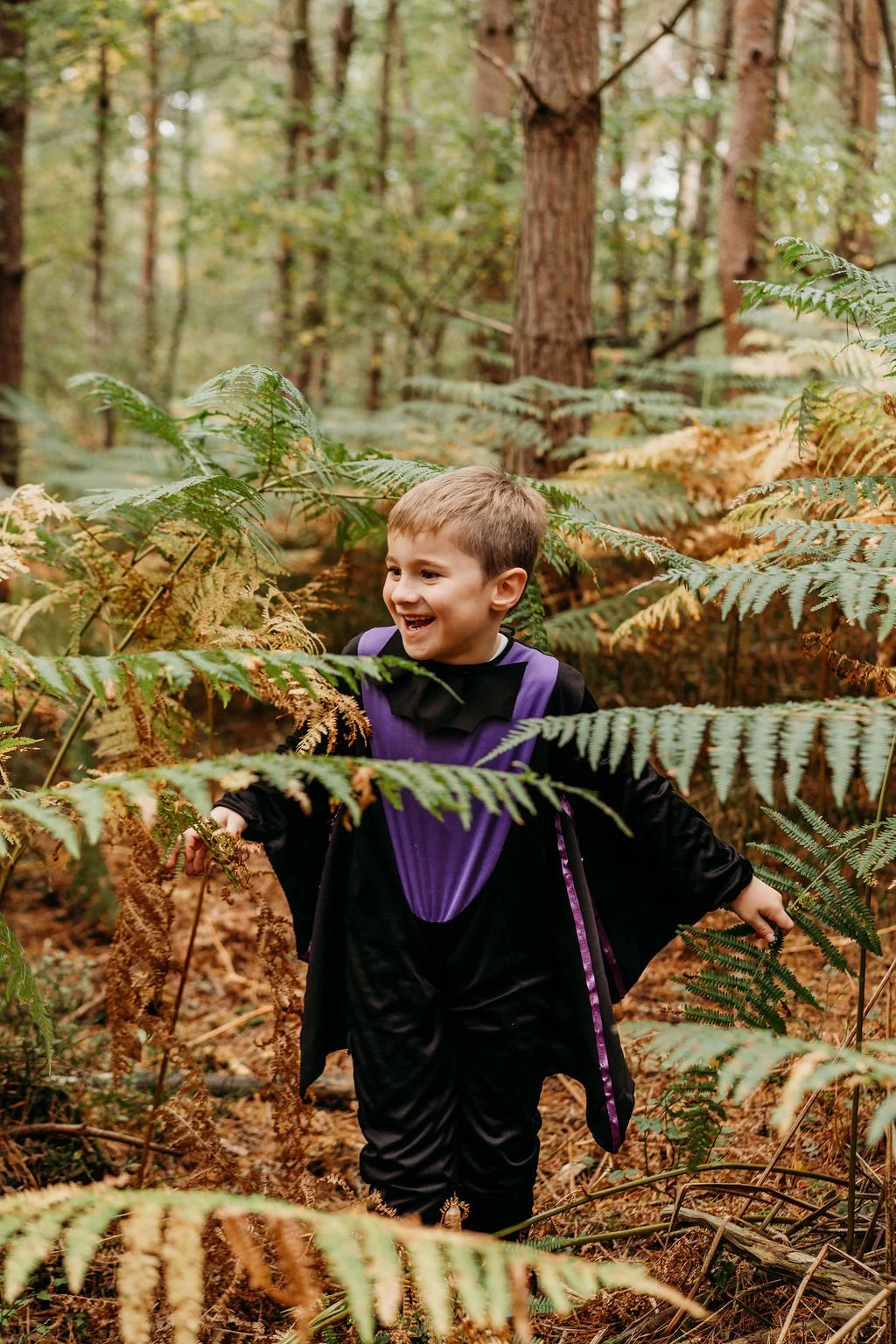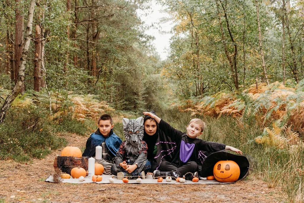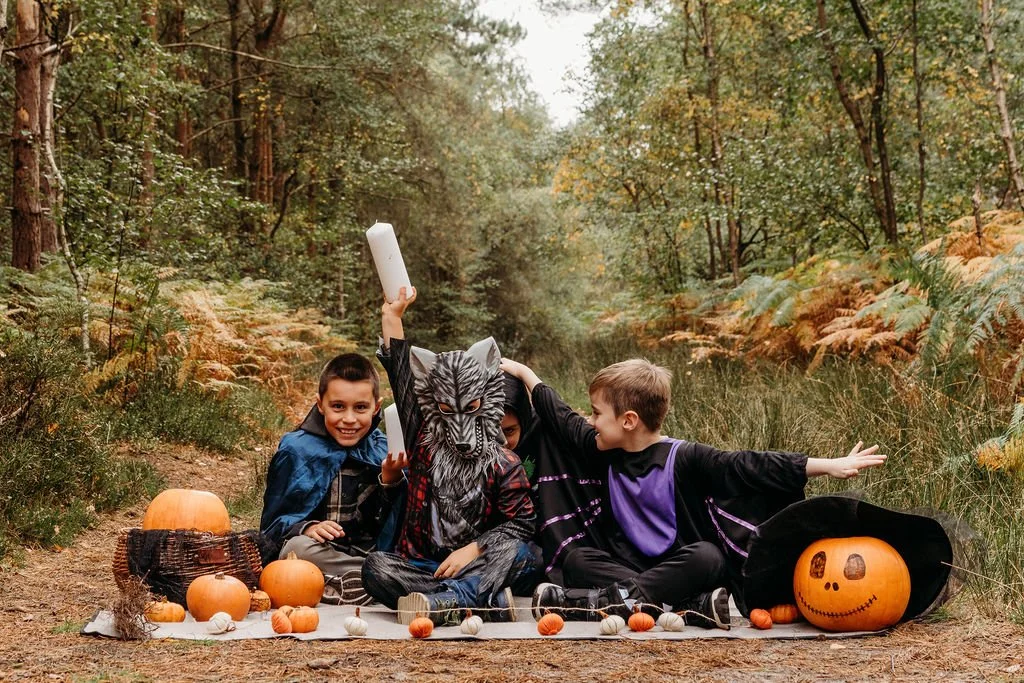 Halloween is one of my favourite excuses to go a little extra—rich colours, playful props, and a touch of drama in the most beautiful woodland. This year I styled a family Halloween photoshoot in Aspley Woods, Milton Keynes, and it was everything I love: cosy layers, cinematic light, and kids who could run wild like friendly little woodland spirits.